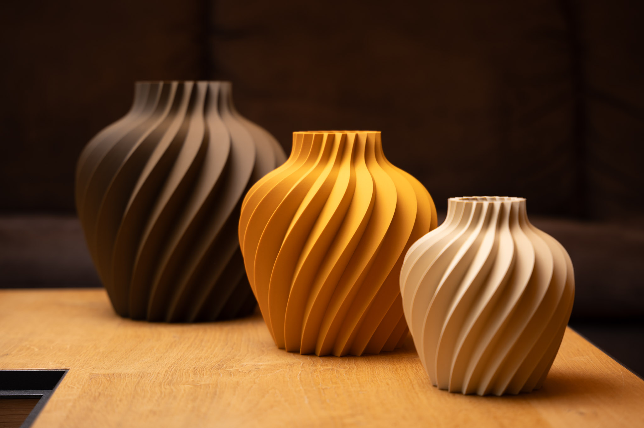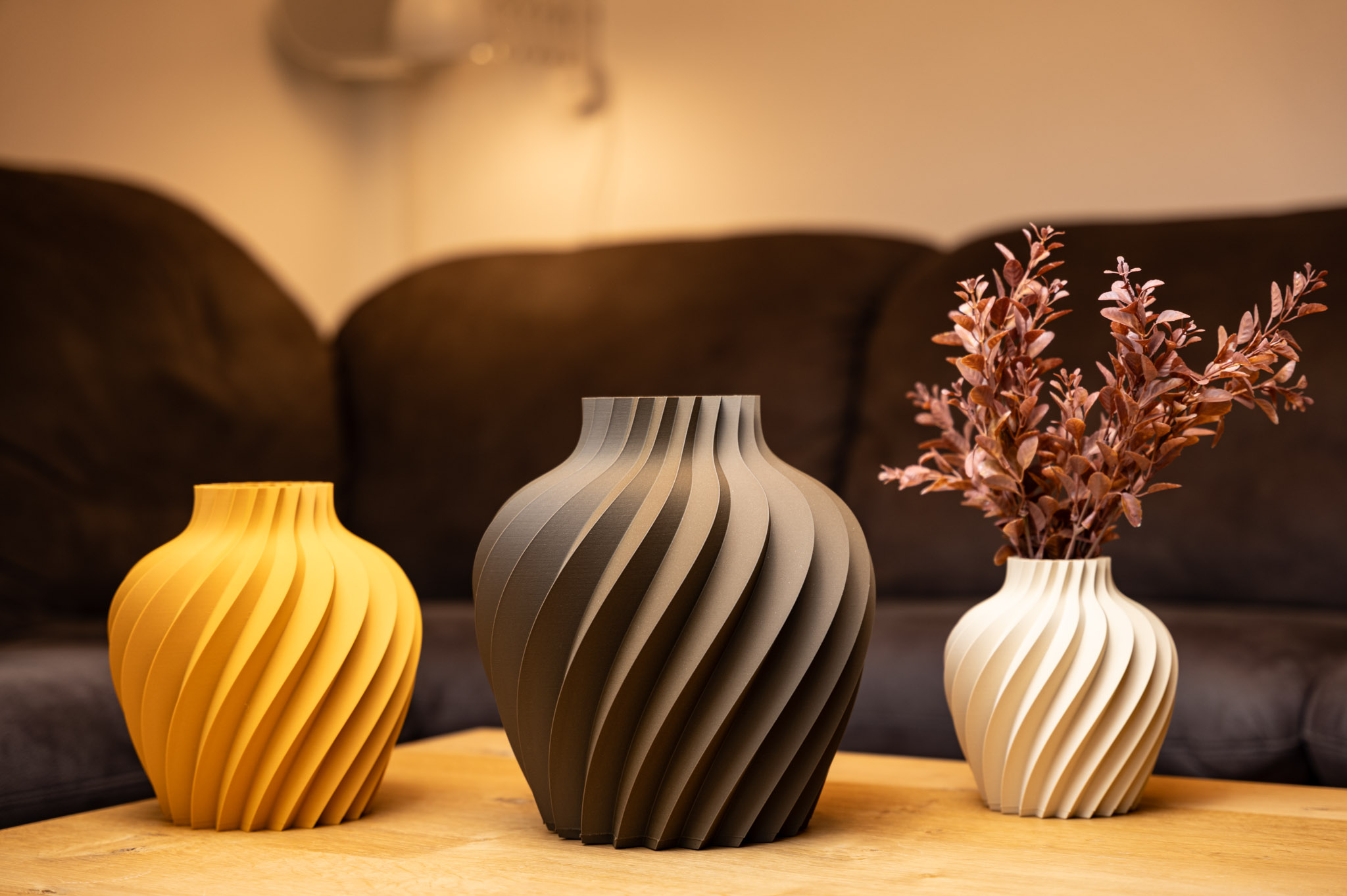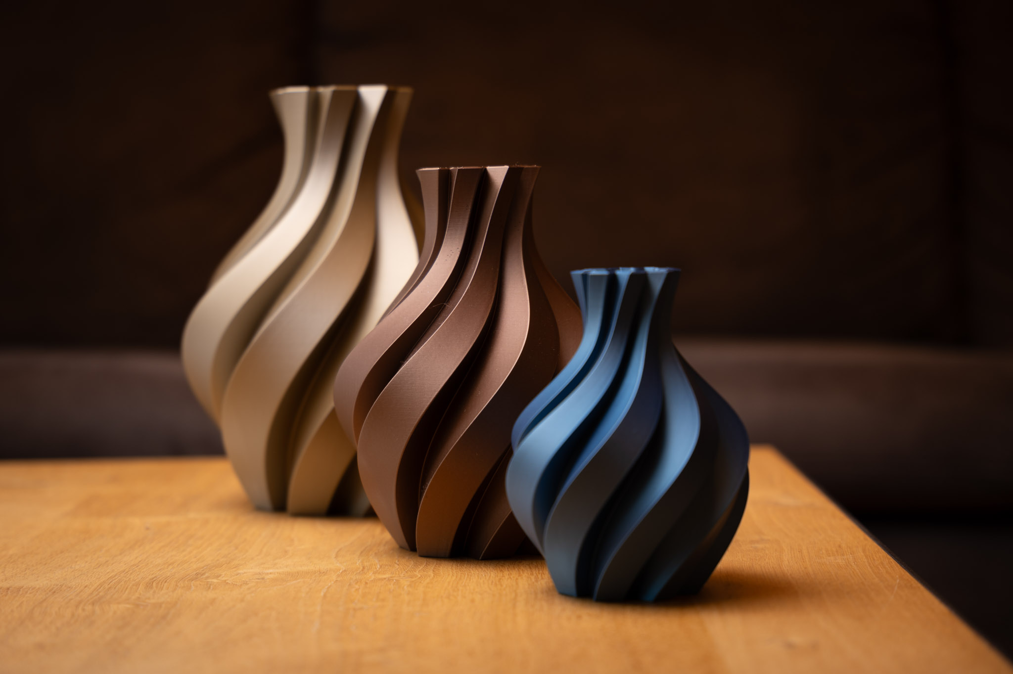Unsere 3D-gedruckten Wohnaccessoires entstehen aus umweltfreundlichem PLA direkt in München. Besonders beliebt sind unsere Vasen für Trockenblumen, die mit skulpturaler Eleganz jeden Raum bereichern. Jedes Stück ist ein stilvolles Unikat – nachhaltig und modern zugleich.