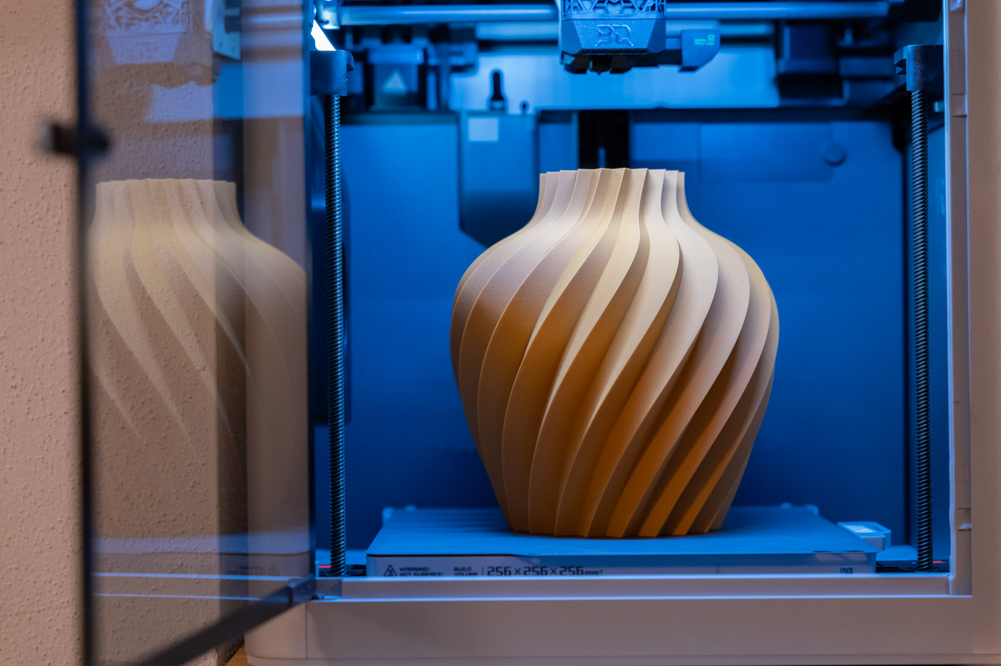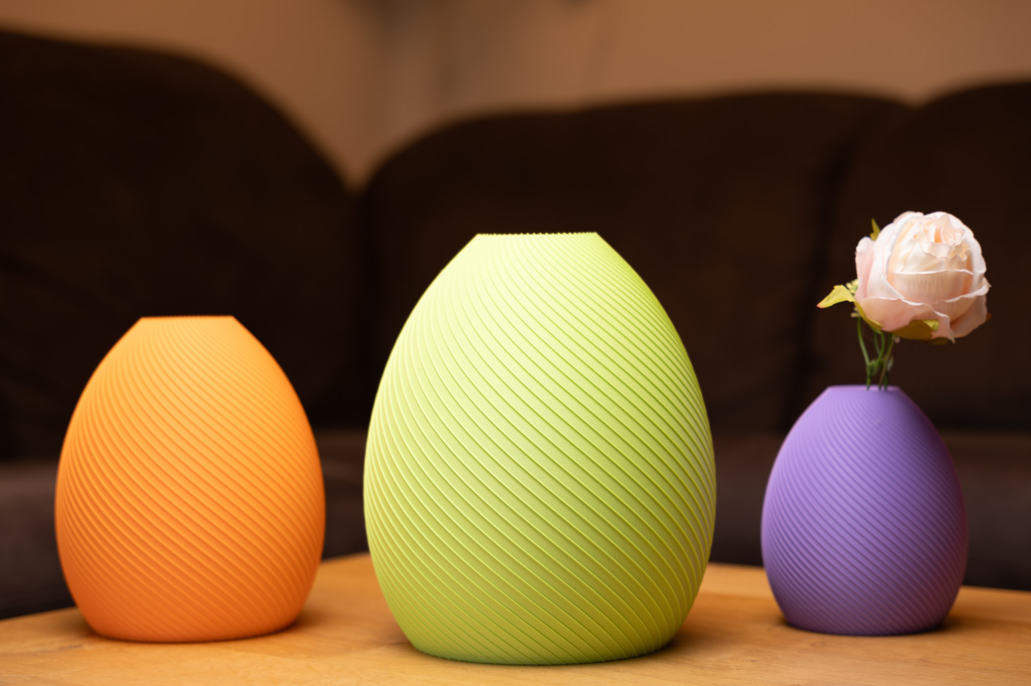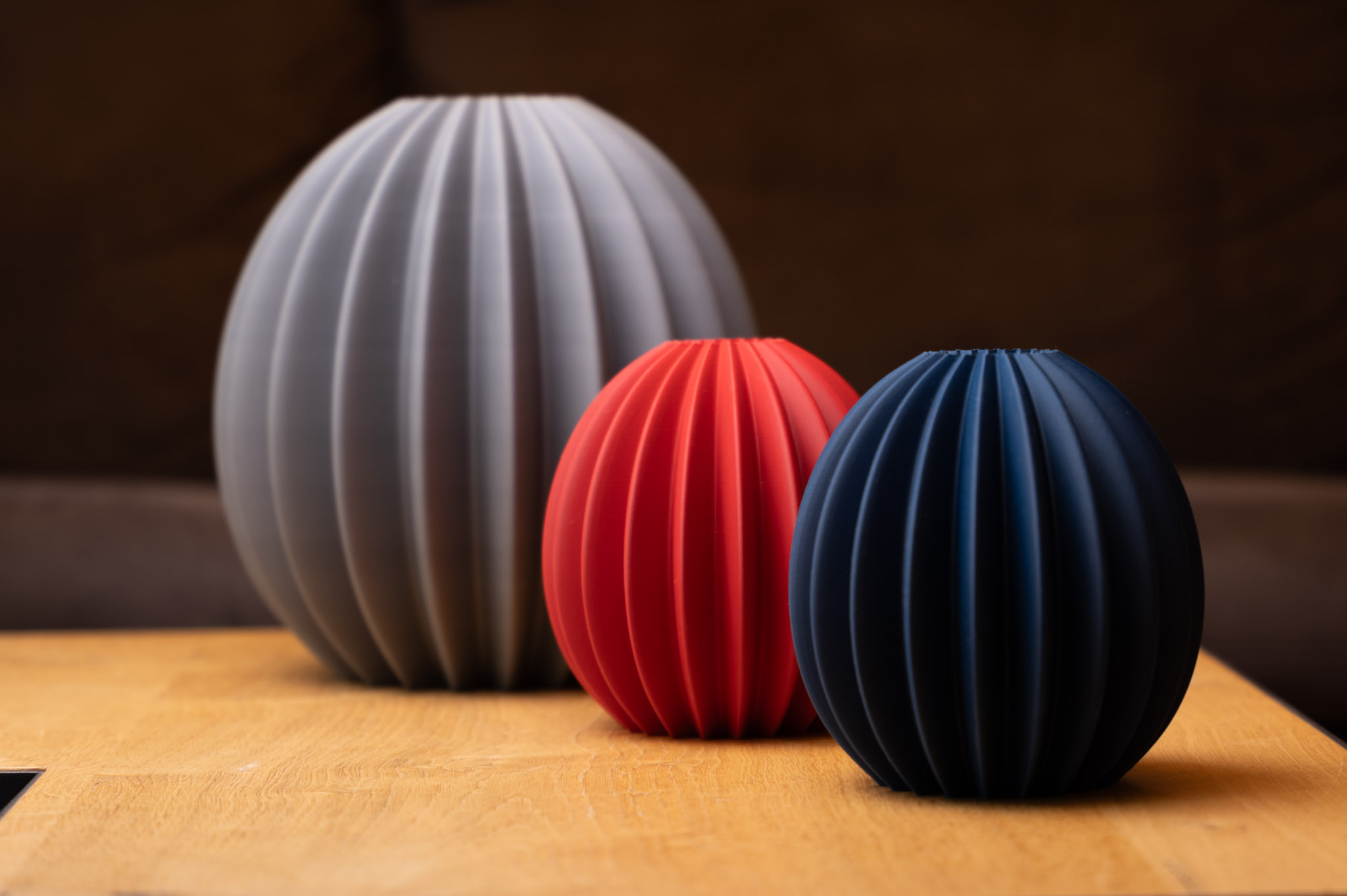 Unsere 3D-gedruckten Wohnaccessoires entstehen aus umweltfreundlichem PLA direkt in München. Besonders beliebt sind unsere Vasen für Trockenblumen, die mit skulpturaler Eleganz jeden Raum bereichern. Jedes Stück ist ein stilvolles Unikat – nachhaltig und modern zugleich.